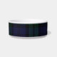Traditional dark blue and green Black Watch tartan plaid around this white ceramic dog bowl. Custom white text is ready to personalise with your pet's name. Makes a great gift idea to a new dog owner.