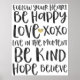 Black Watercolor Inspirational Words Gold Heart: follow your heart, be happy, love, xoxo, live in the moment, be kind, hope and believe