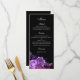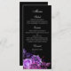 Black wedding menu. Purple floral dinner menu