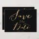Gold foil wedding Save the Date invitation cards with customisable text printed on black background