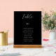 Black Wedding Seating Chart Table Card Elegant