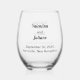Serve drinks to your guests and enjoy also sipping drinks with a touch of personalisation. Stemless wine glass that you can customise by typing the names of the bride and groom, date and location of the wedding. Wine glass as a keepsake of your joyous celebration and as favour also to appreciate the presence of your guests. A simple design for couples or hosts who prefer plain texts design without any things in background to highlight their names and the other texts contents. Texts are centre aligned style and combination of calligraphy font to enhance the style and sans serif font for readability and clarity. The black texts on the transparent background also ensure readability and clarity. This classic and timeless black colour on transparent background can also complement various wedding colour themes or schemes. Please check the appearance of the front and back sides after typing texts. If the appearance is pleasing to you, you can place your order now. If you need to resize and reposition the texts to fit in the template, please adjust in the design tool. You can also change the font style, font colour and put background colour in the design tool. Congratulations on your engagement! Wishing you a lifetime filled with love and happiness.