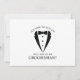 featuring a black tuxedo suit and bow tie illustration, with proposal message in a classic serif font on the front side. The back side includes a customisable message.