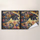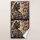 Black Whimsical Cat Abstract Floral Painting Art Bath Towel
