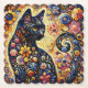 Black Whimsical Cat Abstract Floral Painting Art Paper Coaster