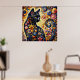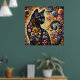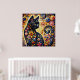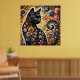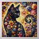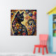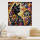 Black Whimsical Cat Abstract Floral Painting Art Poster