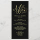 This elegant menu features whimsical flourish gold typography on a black background. You can add your details in the customise menu. This menu is part of a beautiful matching wedding suite that can be fully personalised.