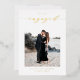 We are engaged! Announce your engagement to family and friends with this customisable gold foil photo engagement announcement card. It features a whimsical script and classic typography. This elegant photo engagement announcement is available in other colours. Personalise by adding your photos, names and other details.