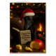 Humorous Christmas card featuring a black Whippet reading 'The Cheese Tax at Home Regulations 2025' whilst trying to resist the urge to eat the cheese that someone's left on the table right in front of its nose!