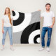 Black & White Abstract Circles on Grey Fleece Blanket