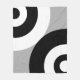 Abstract art with black and white circle geometric shapes on grey.