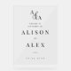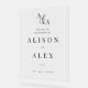 Customise this elegant wedding acrylic using ampersands and initials. Include your wedding details below in refined, modern black lettering. This classic black and white design is a beautiful option for formal weddings year-round. Complementary items available.