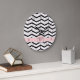 The classic combination of black and white are accented with layers of blush pink in this trendy and classy chevron pattern with layers of different thicknesses to break things up. Customize the monogram on this clock to make it uniquely your own.
