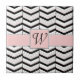 The classic combination of black and white are accented with layers of blush pink in this trendy and classy chevron pattern with layers of different thicknesses to break things up. This tile can be framed to create a trivet or placed inside a wooden gift box lid. Tiles without a frame will also fit inside the large gift box to create a matching set. Customise the monogram with your initial to make it your own.