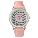 The classic combination of black and white are accented with layers of blush pink in this trendy and classy chevron pattern with layers of different thicknesses to break things up. This watch is available in a variety of styles, colours, and sizes, including sizes for men, women, and children. Customise the monogram on this watch with your initial to make it uniquely your own.
