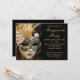 This design features a photo of a carnival mask hand painted in black and white with some light blue. Intricate detailing is also painted on the face with silver grey paint. These invitations are perfect for masquerade or carnival theme parties. It's elegant design makes it ideal for birthday, weddings, or company and corporate parties.