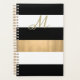 Stylish black, gold tone and white coloured daily / monthly planner done in a bold striped pattern. Personalise the one letter monogram to suit your needs.
