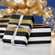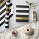 Black and white stripes pattern with 2 gold stripes as an accent. Chic modern design.