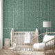 Classic vertical stripes in black, white, and green are featured on this wallpaper.  Always in style, perfect for any decor, from urban to country.