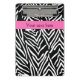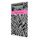 Black and white zebra print. The design features a black and white zebra pattern and a hot pink band in the middle eith your custom text.