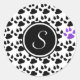 Matching multiple black paw prints with one single purple paw print on a white background. Customisable monogram. Designed by Robin D. Cox.