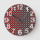 Black white and red chequered tonal wall clock at www.zazzle.co.uk/blubush