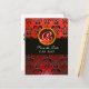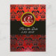 BLACK WHITE AND RED DAMASK RED RUBY Monogram Announcement Postcard