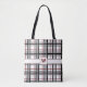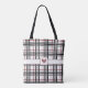 A classic and cosy plaid pattern gets a stylish twist by combining a classic combination of a white background with black and grey bars with a rich red accent. Customise the monogram with your own initial to make a unique accessory. This bag is available in multiple sizes and both tote bag and cross body bag styles.