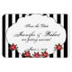 This beautiful and elegant design, called Black White and Red Rose Wedding, has a black and white stripe background. In the centre there is a white inset frame with scalloped edges with red roses towards the bottom. This would be perfect for your Gothic wedding or modern event! This set has invitations, save the date cards, response cards, thank you cards, table number tent cards, envelope seals, wine labels, binders, return address labels and many more day-of wedding stationery pieces, favours, and gifts available. Use the envelope seal stickers for any of your DIY gifts - these are available in both large and small sizes! All elements are printed on our high quality products, they do not include any real gold, jewels, embossing, or other textile elements. All designs are copyright Noteable Expressions, Inc. All rights reserved.