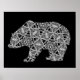 This is a beautiful simple wildlife bear outline in white on a black background. This wild animal is filled with a detailed, complex, intricate lacy geometric pattern or texture, originally designed for adults to colour. This unique colouring art is beautiful and quite striking!