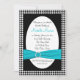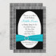 This chic and modern aqua blue, black, and white houndstooth pattern 30th birthday party invitation has a blue FAUX ribbon and crystal brooch on it. All text and the paper type is fully customisable. If you require any matching products, such as RSVP cards, postage, envelope seals etc., please email niteowlstudio@gmail.com with your request.