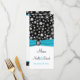 This black and white snowflakes menu card with aqua blue FAUX ribbon and snowflake medallion matches the wedding invitation shown below. It is designed on a rack card with a glossy front, and matte finish back. If you would like a menu card on invitation paper to match your invitations, or if you have any requests for additional items or changes, please email niteowlstudio@gmail.com with your request.