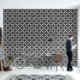 Black and white Deco interlaced pattern with bold geometric structure. This modern design blends symmetry and contrast, creating a sophisticated accent ideal for contemporary or minimalist interiors seeking a refined Deco touch.
