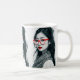Black White Asian Lady Portrait Red Lips And Glass Coffee Mug