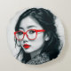 Black White Asian Lady Portrait Red Lips And Glass Round Cushion