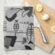This Black and White Atomic Pattern Kitchen Towel is black and white and retro all over. The design features a replica of a vintage 1950's fabric, as seen through the lens of a black and white television program. The modern art shapes include everything from the abstract to the fish! There are small fish swimming to the left, while blowing bubbles. There are larger black and white fish swimming to the right, while blowing grey bubbles. And there are dark grey jellyfish, who don't seem to be doing much of anything. This is the perfect design for anyone who loves fish, fabric, and items with a retro feel. This black and white design proves that you don't have to have colour to be colourful. It's a kitschy blast from the past!