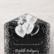 A black background, decorated white balloons, with white and faux silver glitter sparkles on the inside. Personalise and add names, party details, RSVP date, return address and name.