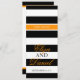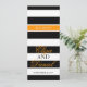 Double-sided simple black and white stripe with touches of bright orange wedding reception dinner menu. Personalise with your own menu details.