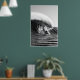 Black & White Barrel Wave Photo – Dramatic Ocean Poster