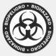 Biohazard - Biopeligro - bilingual black and white English-Spanish biohazard symbol sticker.