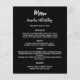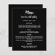 A classic black background. White text. Personalise and add your name, date and the menu.
