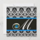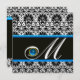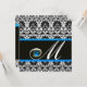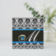 BLACK WHITE BLUE DAMASK MONOGRAM Sapphire Invitation