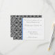 This black, white, and blue RSVP card matches the wedding invitation shown below. The text and paper type is customisable. If you require any other matching items, please email your request to niteowlstudio@gmail.com.