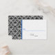 This blue, black and white damask reception place card or escort card matches the wedding invitation shown below. If there are any other matching items you require, please email niteowlstudio@gmail.com.