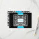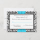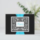 This black and white damask RSVP card has an aqua blue PRINTED ribbon that would be perfect for an aqua and black themed wedding. ALSO, if you re-size the card, or if you change fonts, or the size of the font, some of the design and/or text may get cut-off. Everything will print as you see it on your monitor. I will not see your invitation, and Zazzle will NOT correct anything (typos, mis-alignment etc.). The text and paper is all customisable. ****PLEASE NOTE that the small RSVP card (3.5”x5.0”) is the ONLY card that will fit in the envelope for the 5.25” square invitation, if applicable. If you need help with this invitation, please email me BEFORE you place your order. If you require any other matching items, please email your request to niteowlstudio@gmail.com.