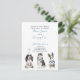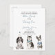 Your baby boy is turning one! Invite your special guests with this adorable invitation postcard featuring hand painted watercolor dogs, in blue, black and white. Baby's name, "Turning One" and the date are in blue hand lettered script typography, and personalised in a chic modern black sans serif. Copyright Elegant Invites, all rights reserved.