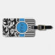 This monogrammed blue, black, and white stripes with floral damask pattern luggage tag is fully customisable and would give your luggage a chic and modern tag that would make it easy to spot at the airport. If you need help, or want something changed, email your request to niteowlstudio@gmail.com.