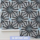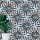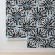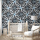 This captivating peel and stick wallpaper boasts a mesmerising geometric pattern that seamlessly blends modern aesthetics with a touch of Art Deco elegance. The interlocking shapes resemble stylised flowers or intricate snowflakes. Their symmetry creates a harmonious visual rhythm. Each shape features meticulously detailed black and white stripes, adding depth and contrast. Subtle blue hues adorn the petal-like sections, infusing the monochromatic palette with a gentle pop of colour. Ideal for anyone who appreciates unique, eye-catching decor.