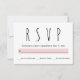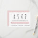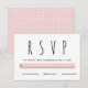 Modern black, white, pink typography wedding RSVP response card. It features the word RSVP in black in a modern font and a band in blush pink. The back includes a geometric pattern in white on pink.