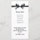 Elegant double-sided wedding menu card with chic black and white bow design. Customise the back with a thank you note, wedding timeline, or meaningful message to make it truly special.